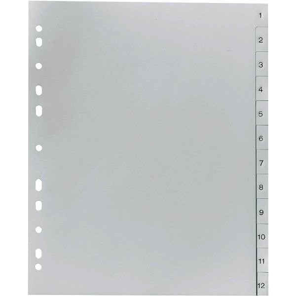 Divider Index Fivestar 1-12 Grey Plastic quantity